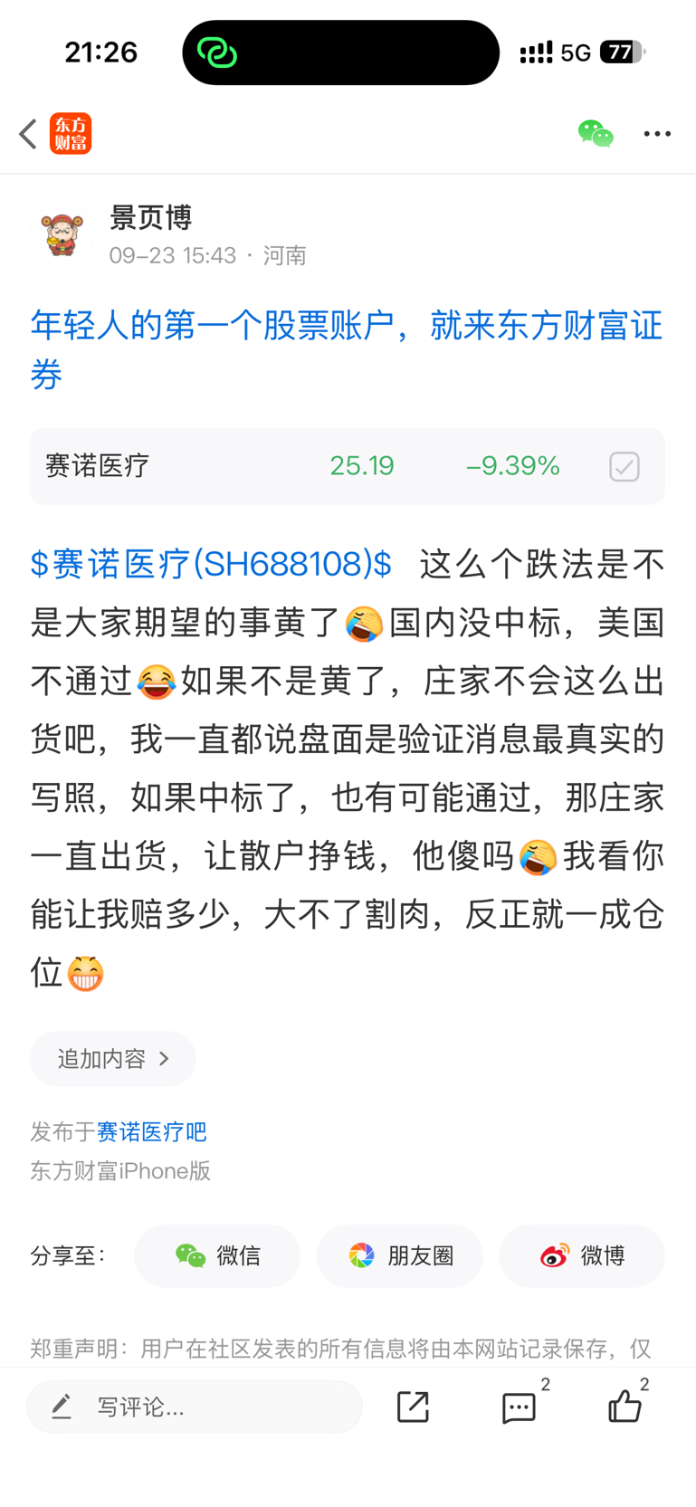 $赛诺医疗(SH688108)$ 操!真让我这张臭嘴说对了