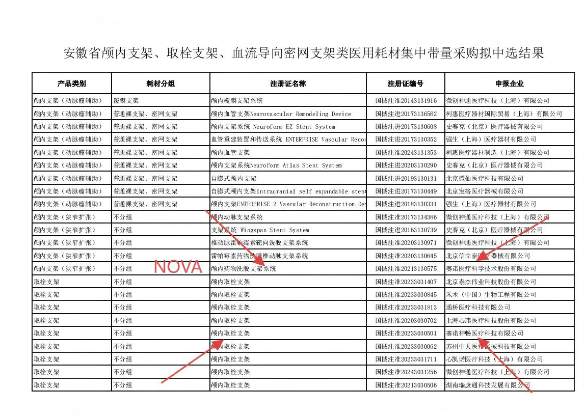 1.赛诺医疗的NOVA中标;这个数据说明,NOVA集采首发不是北京,也不是河北,而是安徽。