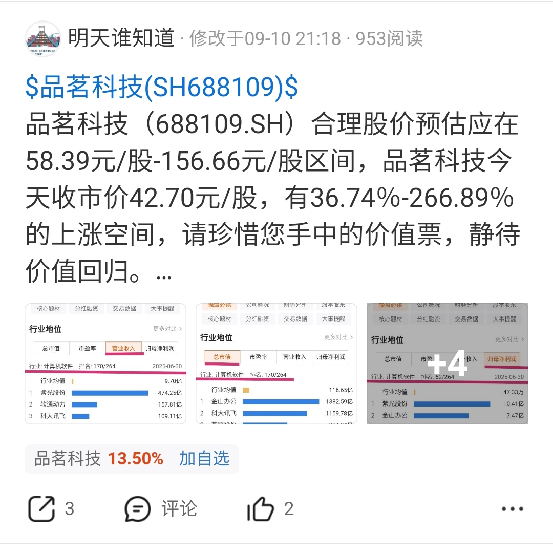 此波品茗科技上150元,奔180元。如恐高可以去盈建科和广联达,国产替代与BⅠM软件相关上市公司即将诞生千亿市值和百亿市值新股票。