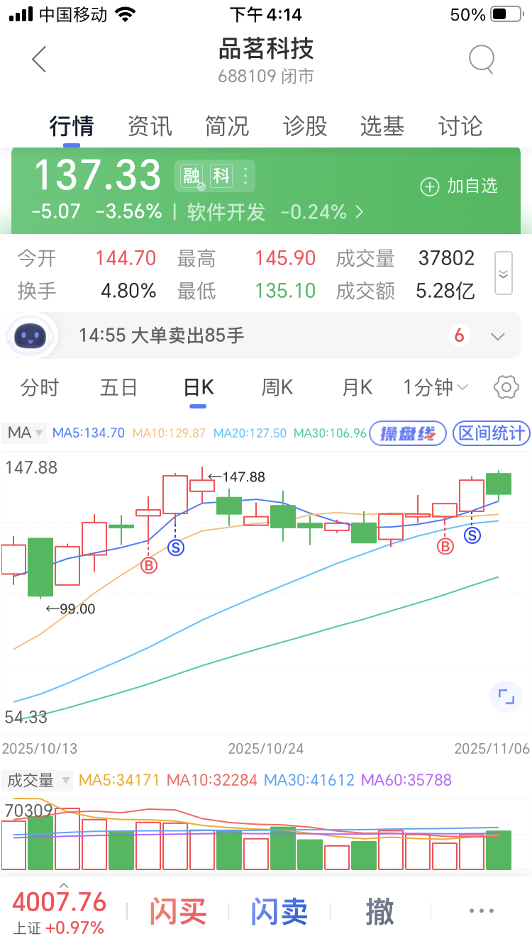 $品茗科技(SH688109)$ 出监管都以为要大涨,都认为的事就得谨慎些。