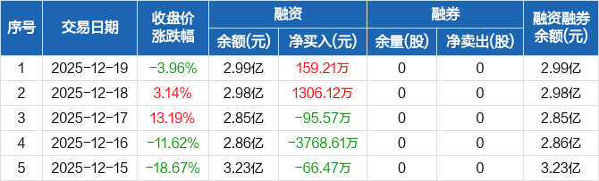 品茗科技:融资净买入159.21万元,融资余额2.99亿元(12-19)