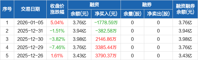 品茗科技:融资净偿还1778.59万元,融资余额3.76亿元(01-05)