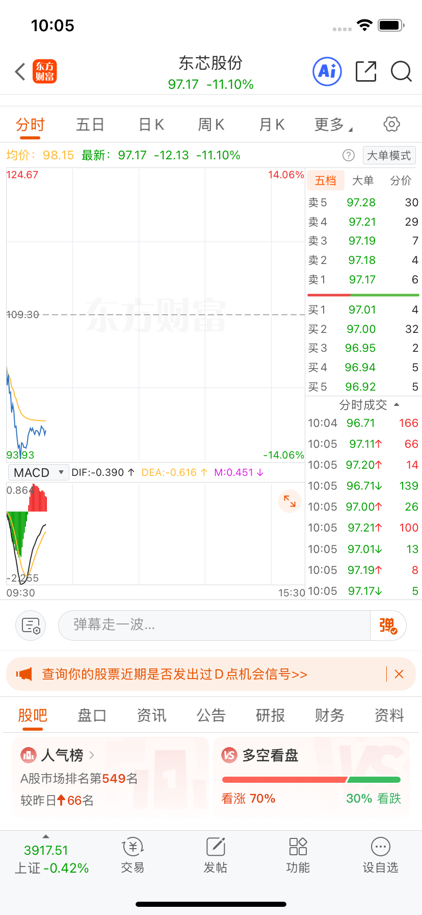 $东芯股份(SH688110)$ 只要这个多空看盘都看涨,都是跌!反之都看跌的时候,就是涨,以后千万不能点看涨!全选看跌!