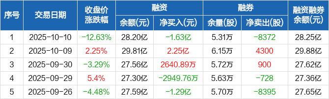 东芯股份:融资净偿还1.63亿元,融资余额28.2亿元(10-10)