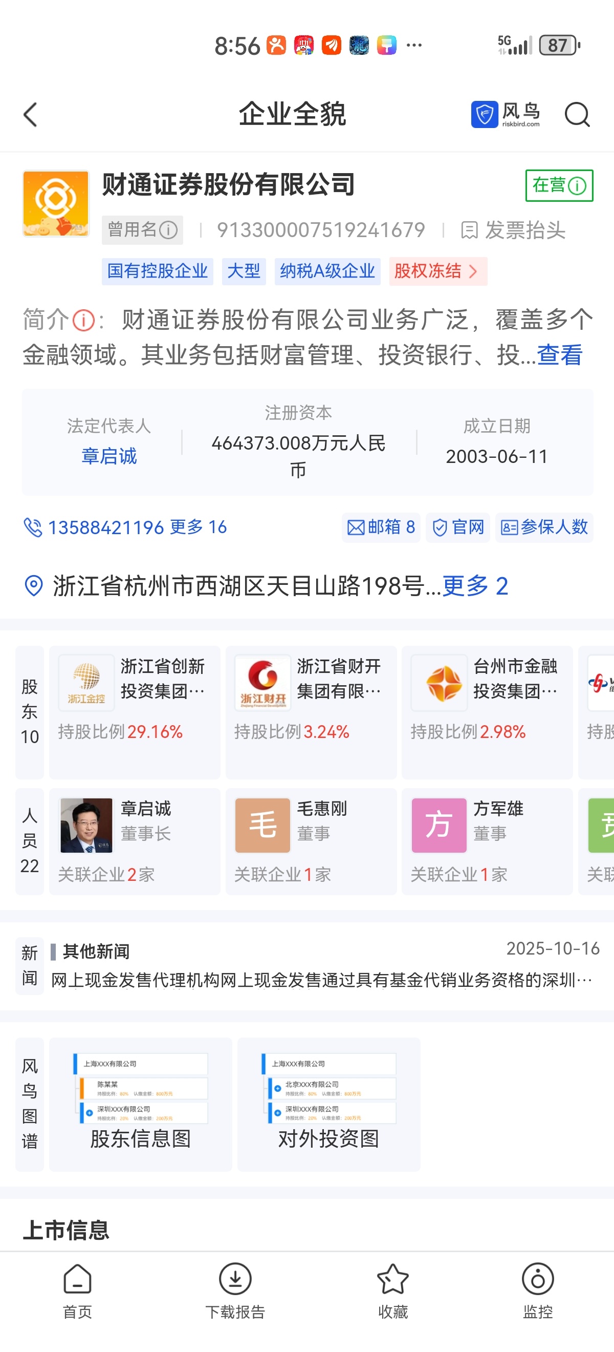 补上财通证券的前三大股东