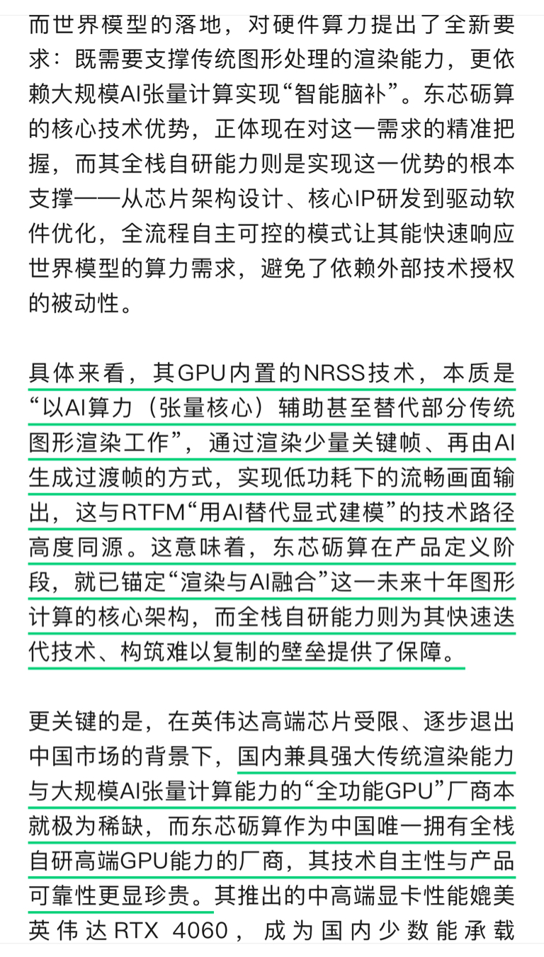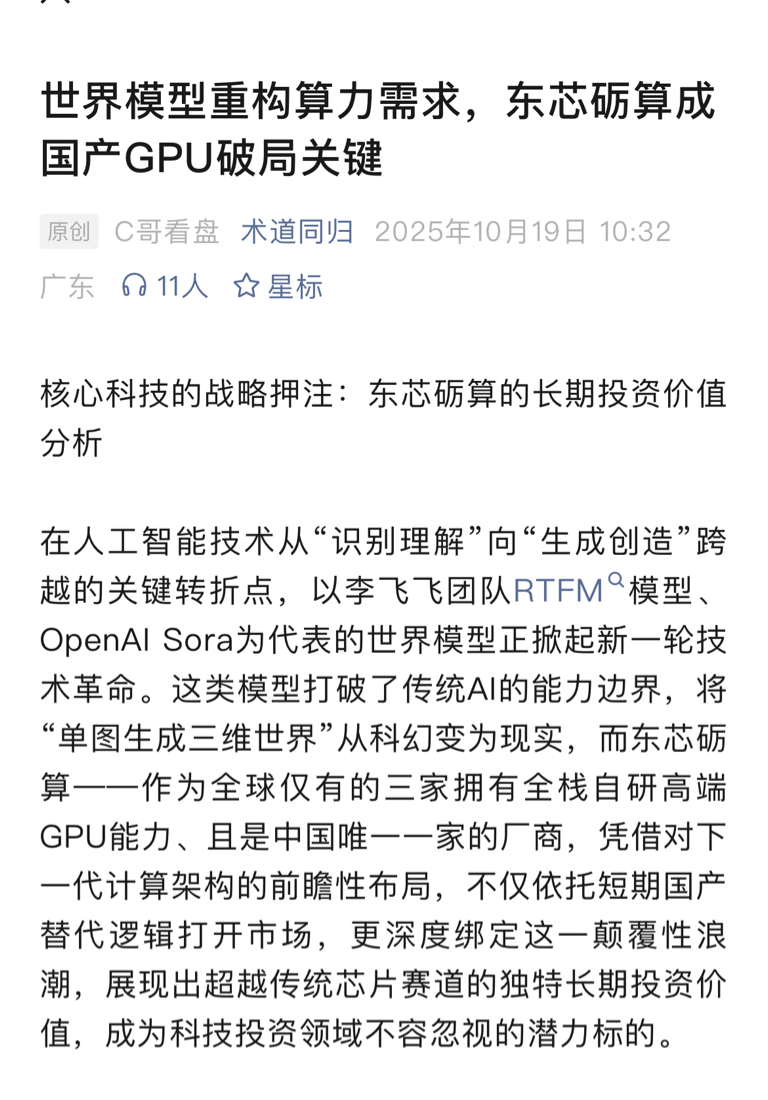 今天涨停验证“世界模型重构算力需求,东芯砺算成国产GPU破局关键”