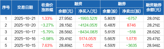 东芯股份:连续3日融资净偿还累计1.46亿元(10-21)