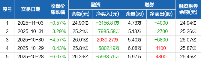 东芯股份:融资净偿还3156.81万元,融资余额24.9亿元(11-03)