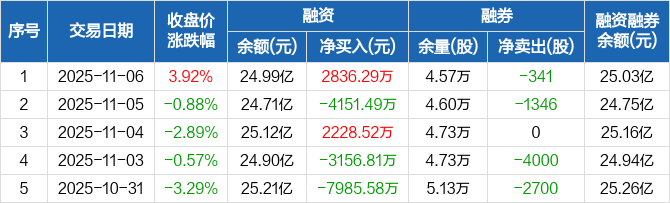 东芯股份:融资净买入2836.29万元,融资余额24.99亿元(11-06)