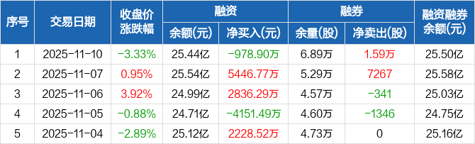 东芯股份:融资净偿还978.9万元,融资余额25.44亿元(11-10)