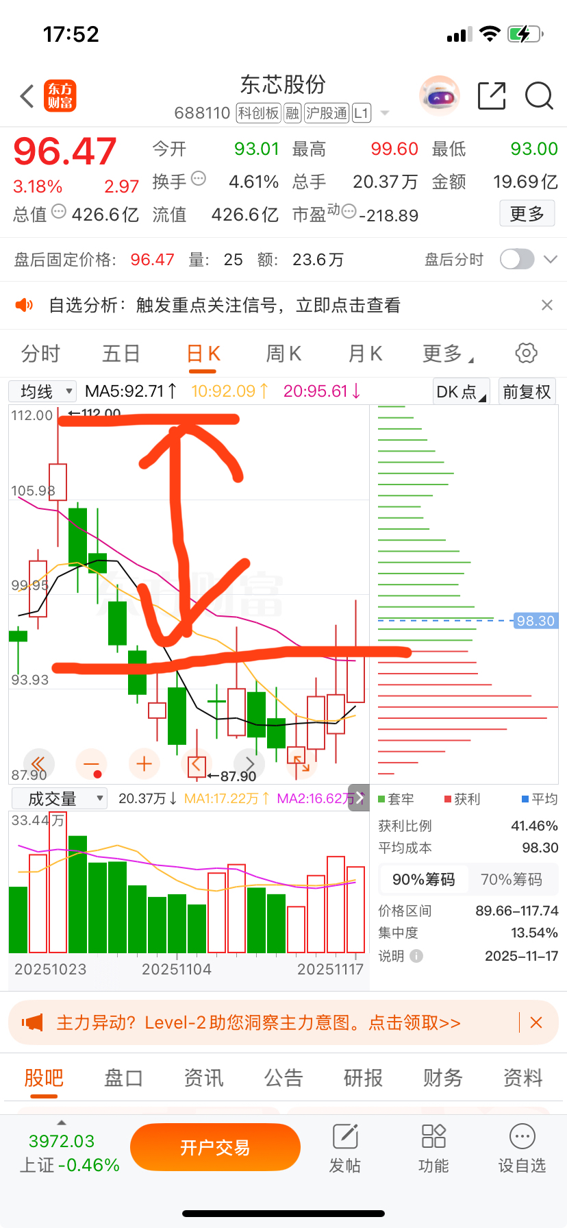 我也希望它涨,我满仓满融,今天把融资的还了。我觉得上升的空间压力很大,套牢盘有点