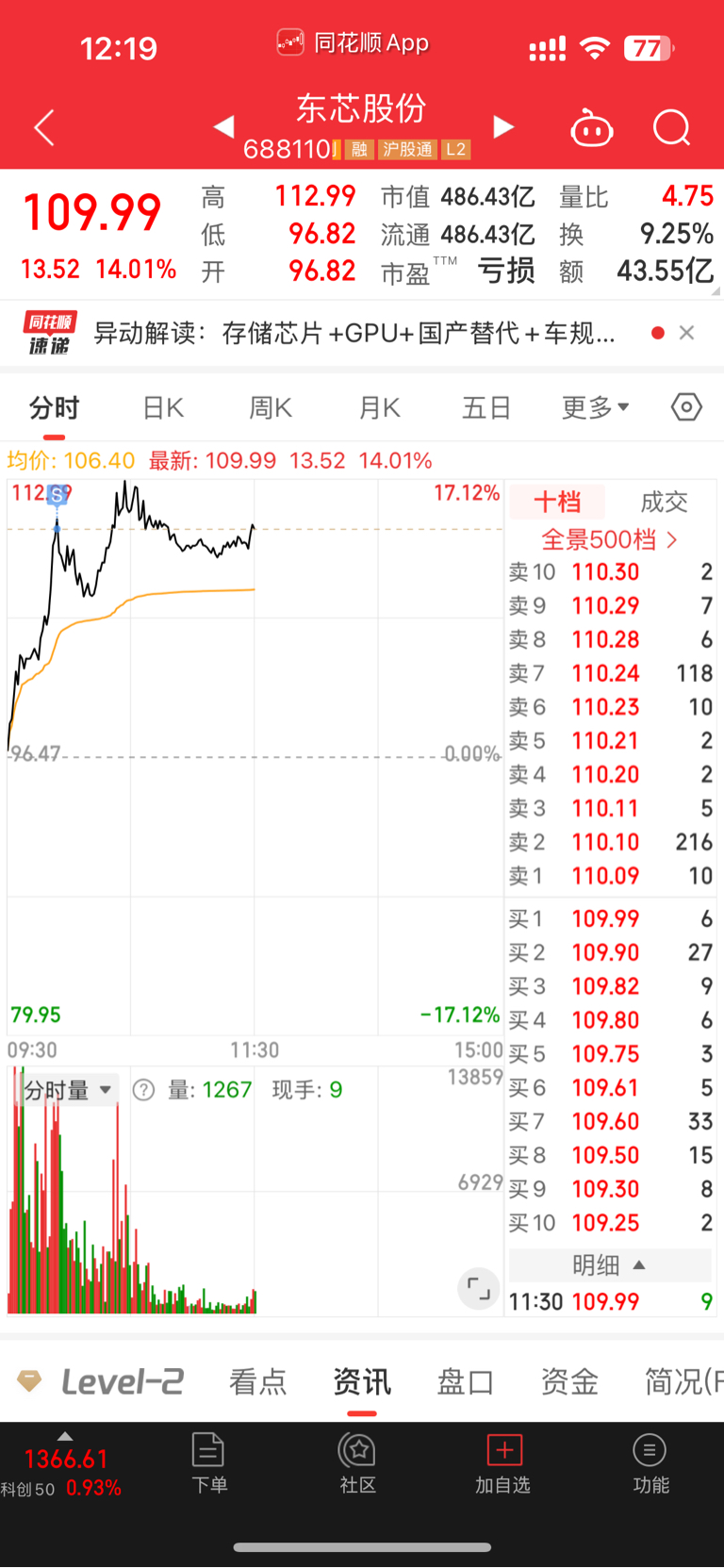 $东芯股份(SH688110)$ 卖飞了。以为今天又回落呢
