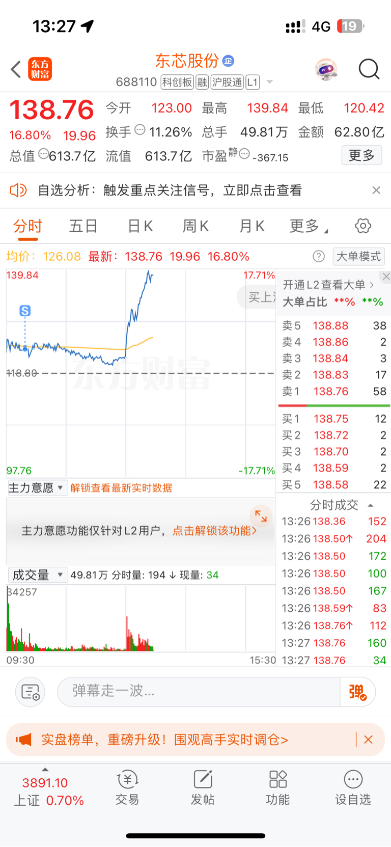 $东芯股份(SH688110)$ 难顶,还美滋滋的做了个t