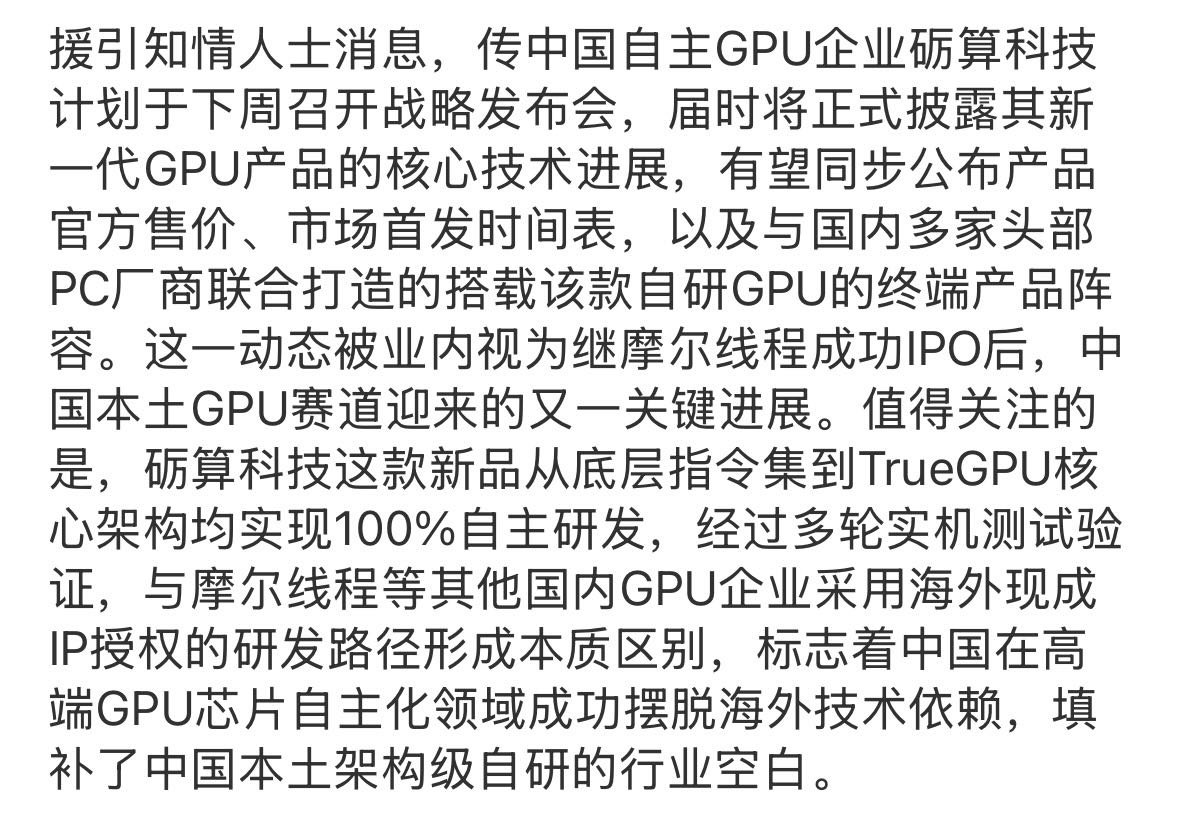 下周砺算科技,准备发布7g100显卡定价和上市时间,7g200的研发进度,与各大