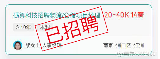 砺算科技招聘物流/仓储项目经理 已经招聘完成 从发布到招聘完成5天的时间 看来要的很急! 卡应该要回来了。