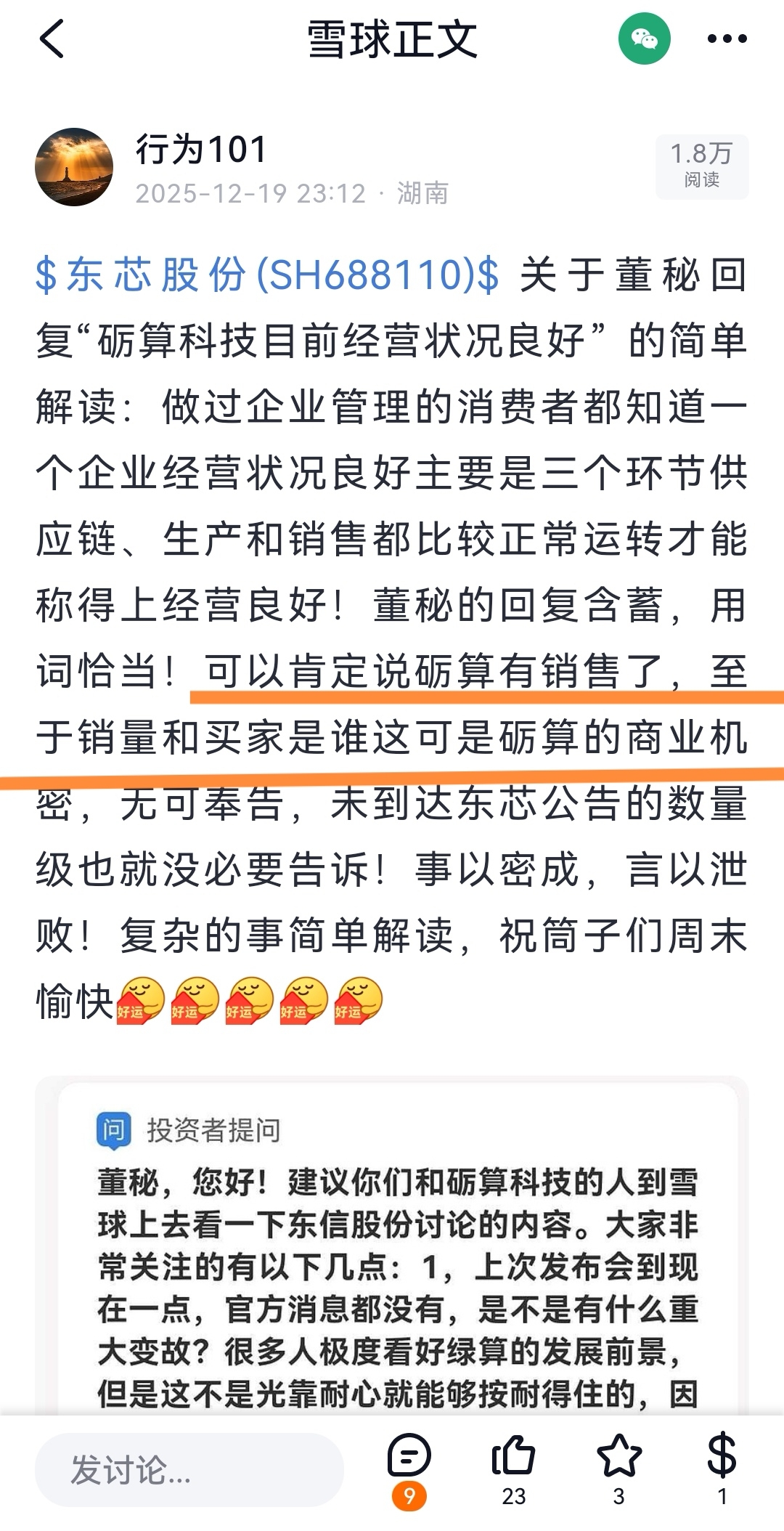 $东芯股份(SH688110)$ 今天公告关于财务数据这块基本上符合预期,实现少量砺算显卡交付也是我去年12月中旬就判断是肯定的事,那么什么是超预期呢?唯一的是东芯股份正式确认了砺算显卡落地,可以踏踏实实不看盘了,闭关半年再来