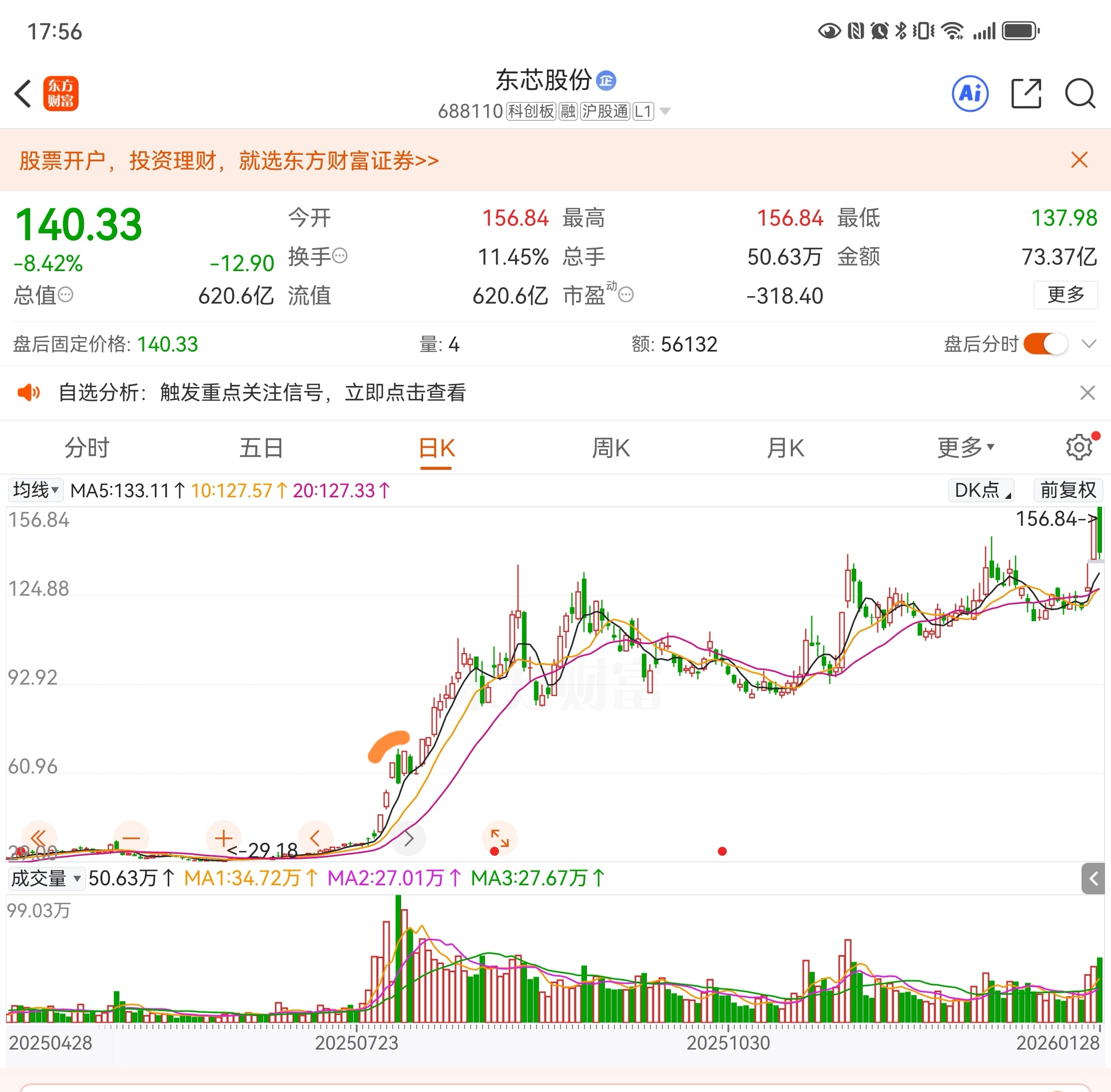 $东芯股份(SH688110)$ 今天这根大阴线像极了去年8月初连续涨停后第一根放量大阴线,明后天见分晓!同坚守者分享。