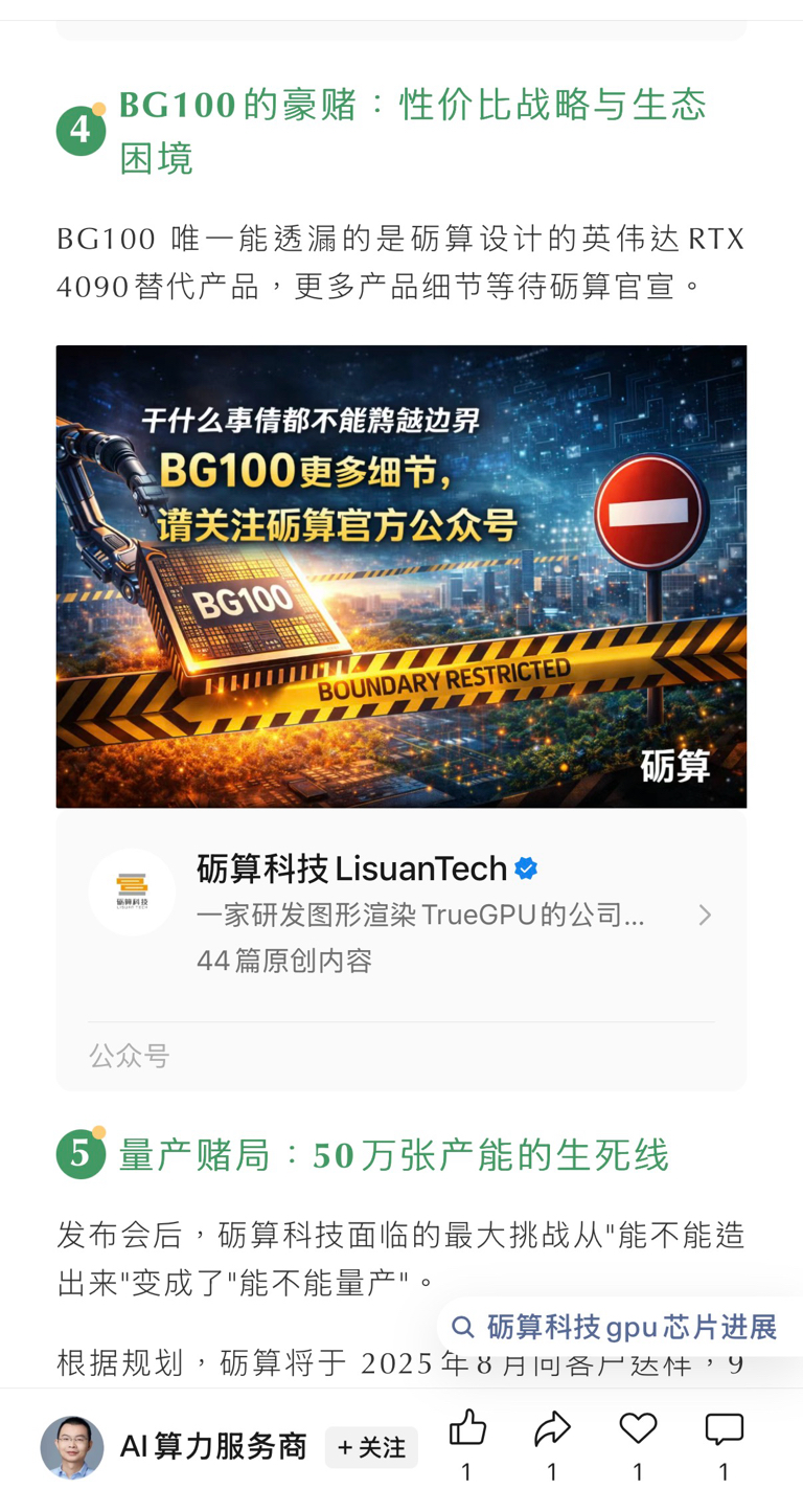 "我们被嘲笑过'PPT造芯',被质疑过'欠薪倒闭',"宣以方在发布会最后说,"但今天,7G100亮了。这是中国GPU的DeepSeek时刻——不是跟随,而是另辟蹊径。"