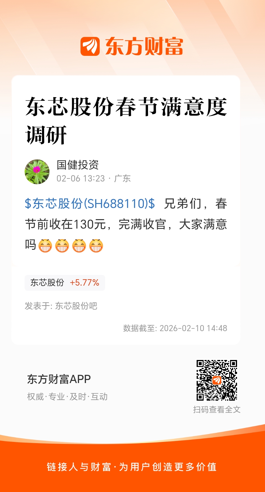 $东芯股份(SH688110)$  兄弟们,春节前收在130元,完满收官,大家满意吗