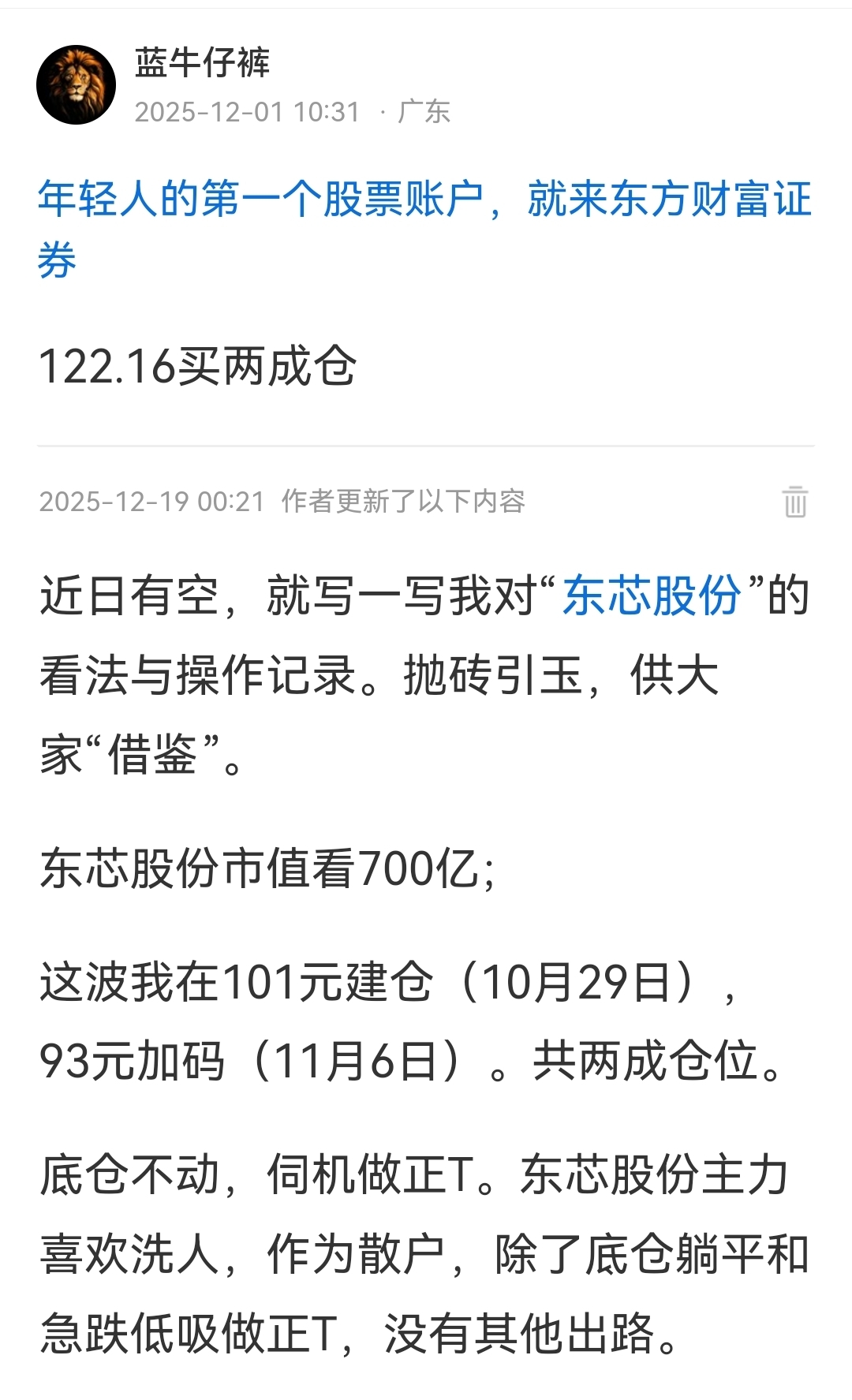 温馨提示: 1.根据《证券法》规定,禁止编造、传播虚假信息或者误导性信息,扰乱证券市场;2.用户在本社区发表的所有资料、言论等仅代表个人观点,与本网站立场无关,不对您构成任何投资建议。用户应基于自己的独立判断,自行决定证券投资并承担相应风险。《东方财富社区管理规定》
