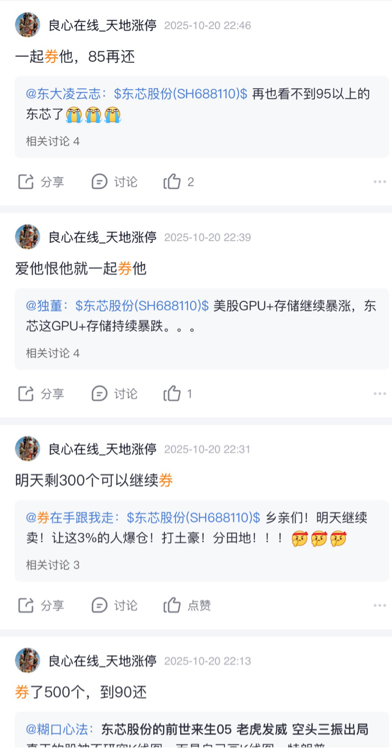 温馨提示: 1.根据《证券法》规定,禁止编造、传播虚假信息或者误导性信息,扰乱证券市场;2.用户在本社区发表的所有资料、言论等仅代表个人观点,与本网站立场无关,不对您构成任何投资建议。用户应基于自己的独立判断,自行决定证券投资并承担相应风险。《东方财富社区管理规定》