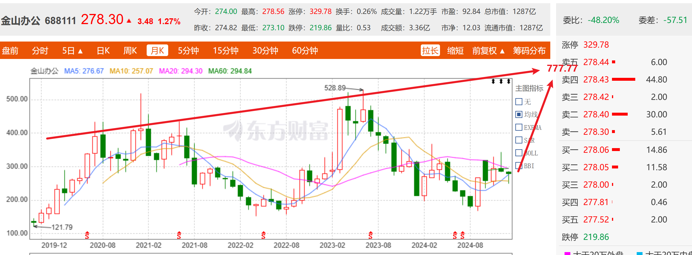 $金山办公(SH688111)$ 直接看齐寒武纪777.77