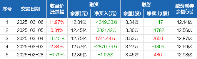 金山办公:融资净偿还4349.33万元,融资余额12.01亿元(03-06)