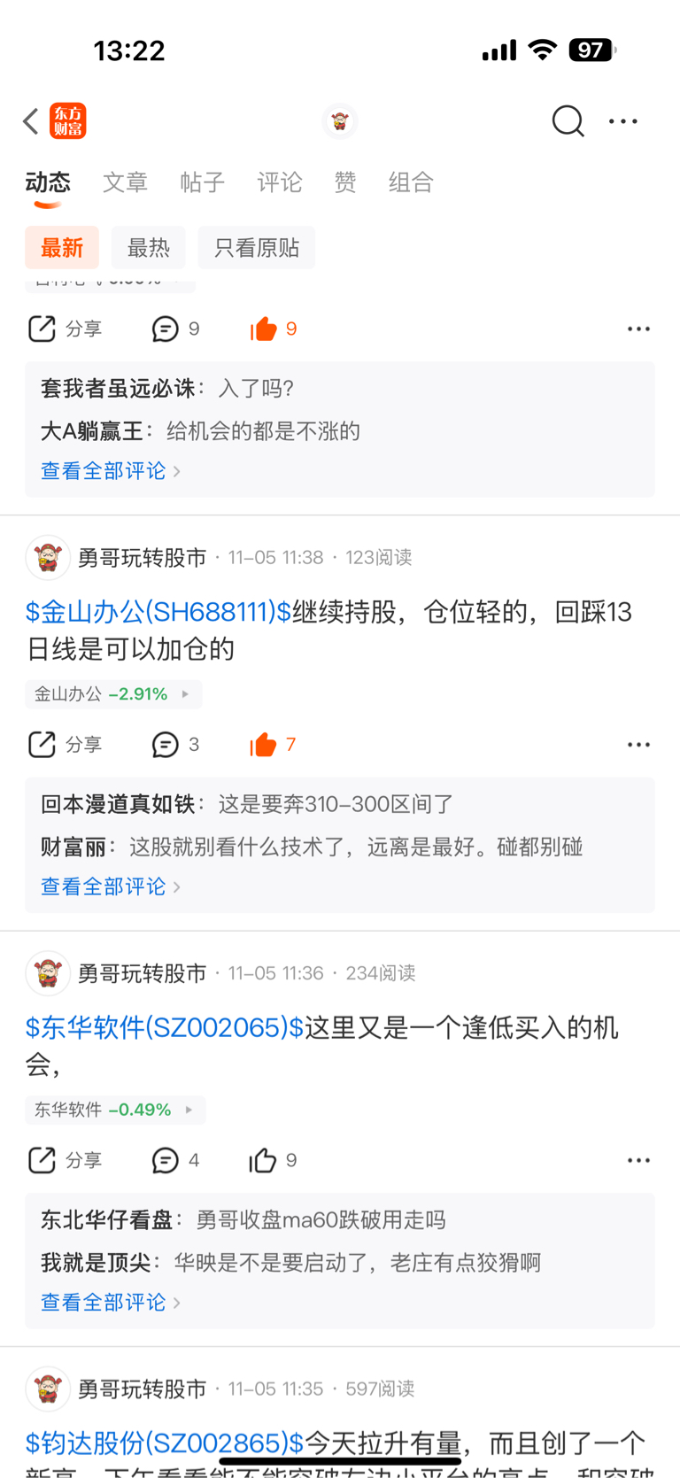 $金山办公(SH688111)$ 今天回踩13日线,这里是个不错的加仓位置,尾盘加仓,行情没有结束,目标400不变