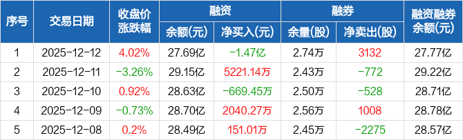 金山办公:融资净偿还1.47亿元,融资余额27.69亿元(12-12)