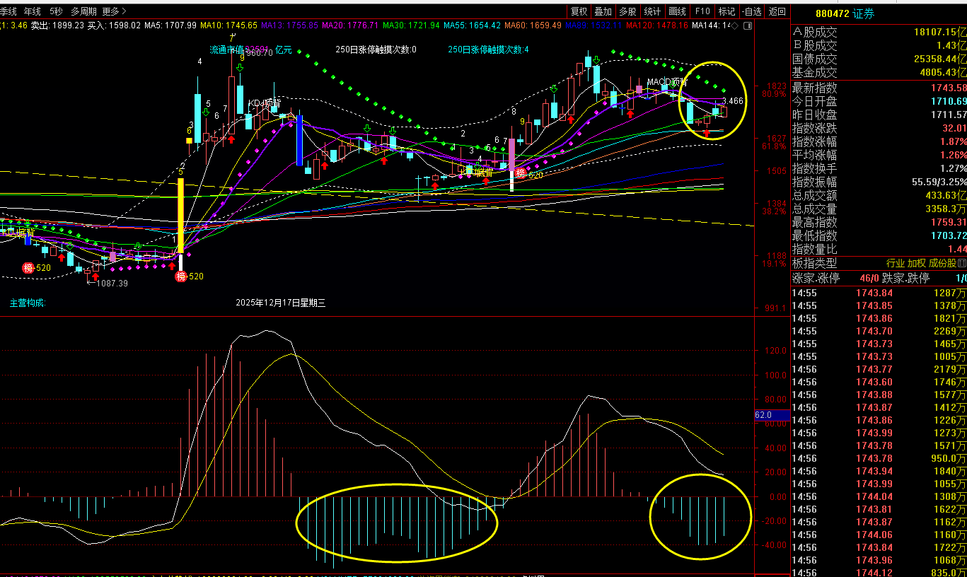 昨天在文档里面给大家讲了指数今天还有低点,今天的最低点是3818点,本来我的预判是今天或者是明天指数很有可能会去一下3790点。到了3790然后再次起来,刚好也就是中金公司东兴证券以及信达证券复牌,本来我的预期中金公司复牌是在下个星期三左右,今天盘中的走势是有点超出预期,这个预期的主要来源是由于下午盘面当中券商出现了快速拉升。这个盘中出现快速拉升主要的原因是跟中金公司明天复牌有关。通过今天的指数上涨有没有回调结束呢?目前还不能确定,因为今天的成交量不够,除非明天把成交量补起来