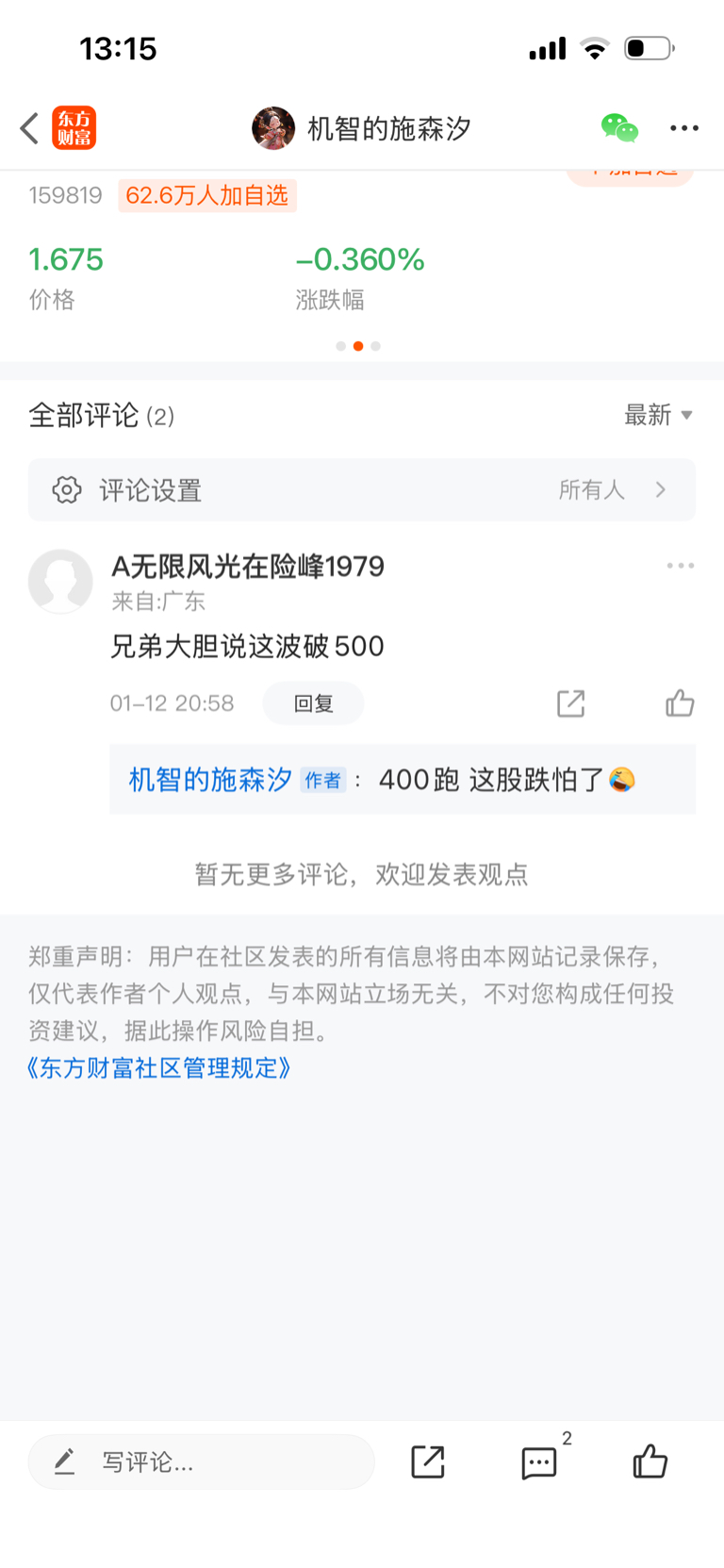温馨提示: 1.根据《证券法》规定,禁止编造、传播虚假信息或者误导性信息,扰乱证券市场;2.用户在本社区发表的所有资料、言论等仅代表个人观点,与本网站立场无关,不对您构成任何投资建议。用户应基于自己的独立判断,自行决定证券投资并承担相应风险。《东方财富社区管理规定》
