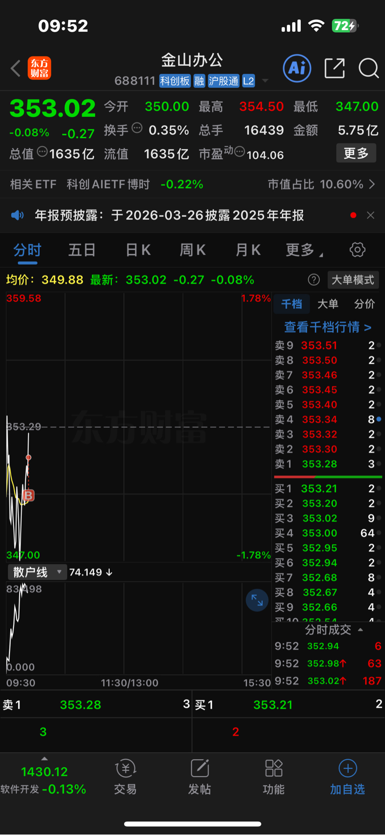 $金山办公(SH688111)$ 感觉跌不下去了,先加点仓,如果跌了继续买,金山不是柚子票,没必要怕