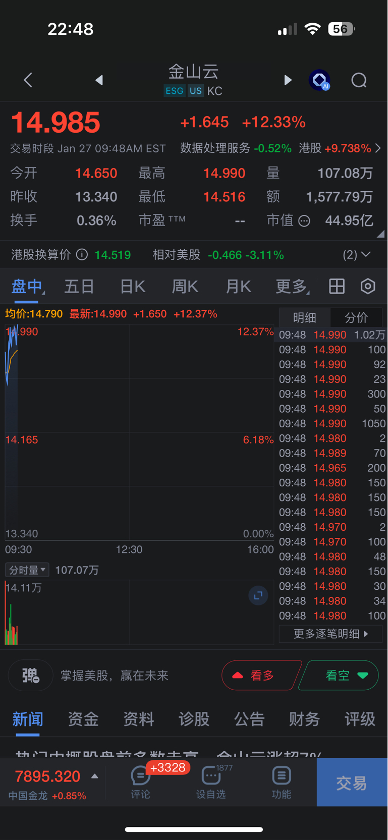 晚上金山云爆涨