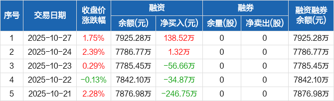 联测科技:融资净买入138.52万元,融资余额7925.28万元(10-27)