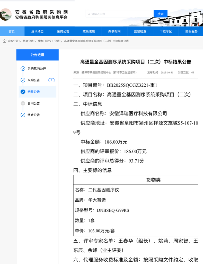 安徽疾控这单又中了,G99这型号出镜率挺高啊。看来各地公共卫生系统对国产测序仪的