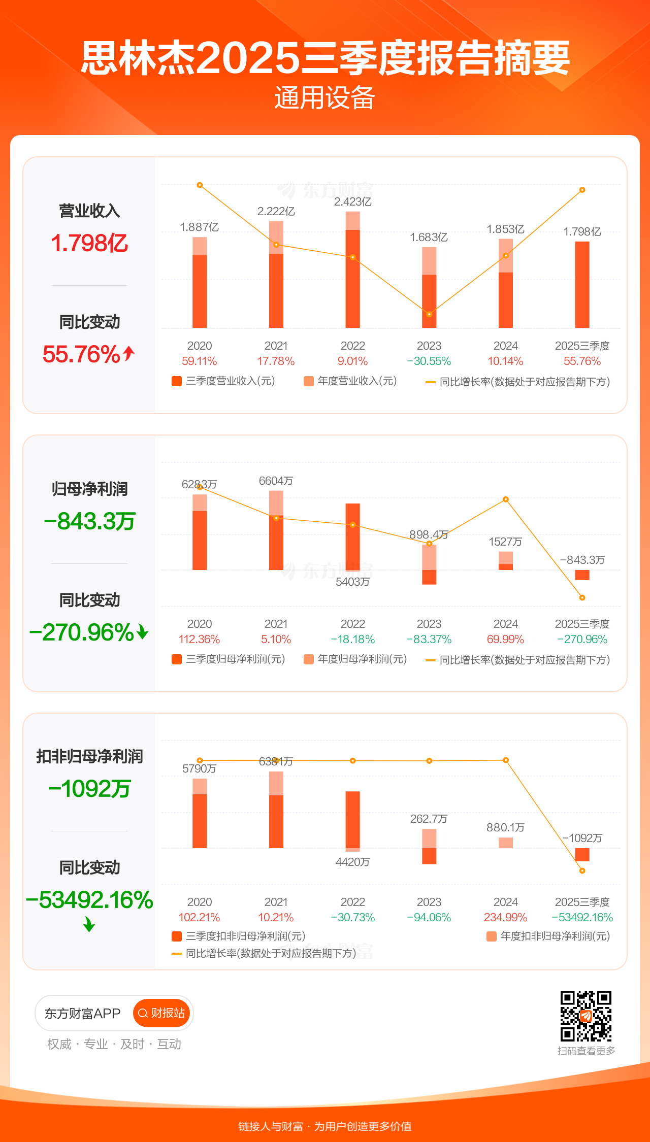 图解财报:思林杰前三季归母净利润-843.32万元,上年同期493.30万元