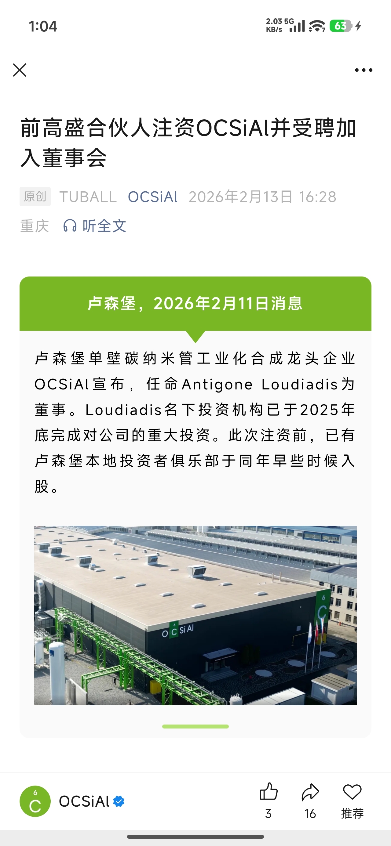 天奈科技单壁碳纳米管的对手公司最新动态