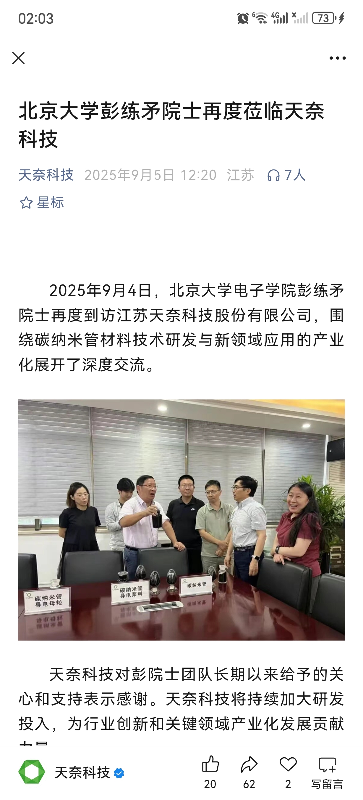 $天奈科技(SH688116)$ 北大彭院长团队和天奈公司保持紧密合作