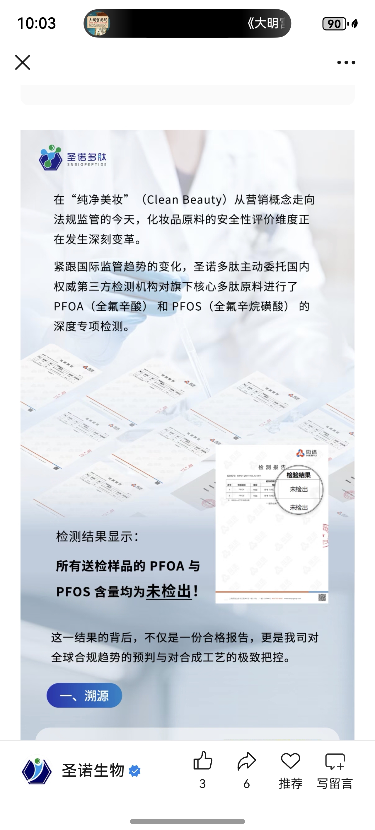 $圣诺生物(SH688117)$ 圣诺生物核心原料完成合规检测