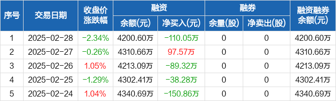 中钢洛耐:融资净偿还110.05万元,融资余额4200.6万元(02-28)