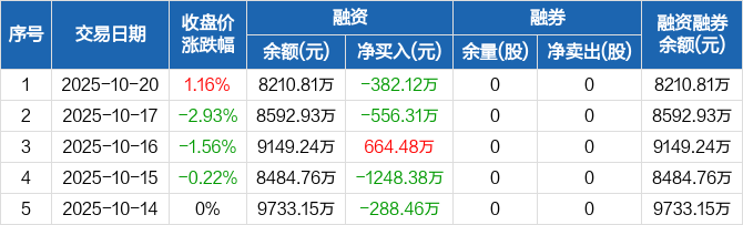 中钢洛耐:融资净偿还382.12万元,融资余额8210.81万元(10-20)