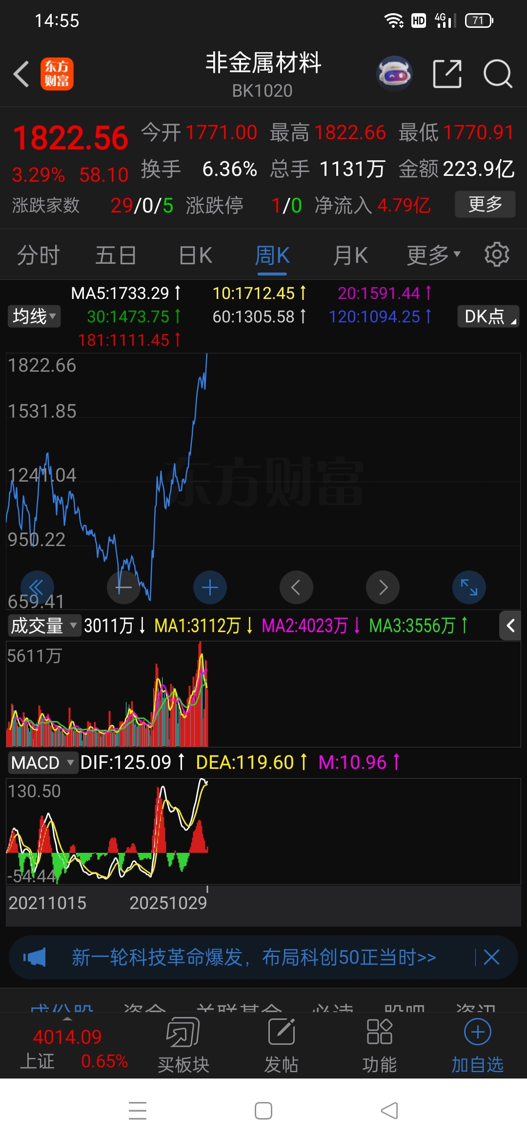 板块去年从650涨到现在1822点,这股还在坑里划水分错板块类别,应该划到钢铁板