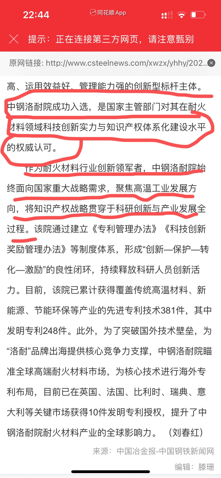 $中钢洛耐(SH688119)$ 我来给你们点信心:就这几句话,足以说明中钢洛耐耐火技术的强国地位。可能股价并不高,可能市值没多大,也可能股价还是不涨,但是你说他是耐火行业老二,舍我谁敢问鼎王者?#周末杂谈# #炒股日记# #强势机会# #投资干货#