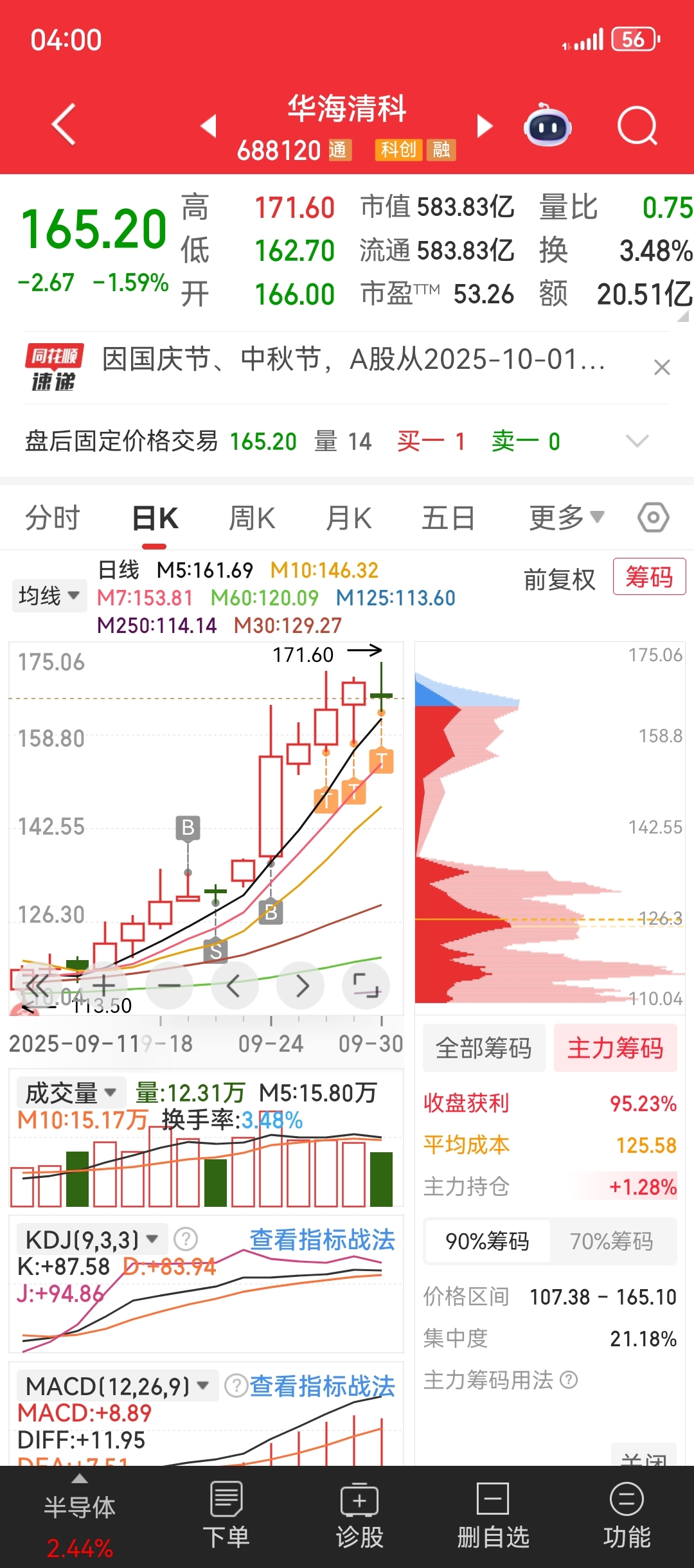 $华海清科(SH688120)$ 主力筹码今天反而在堆积,问题不大。缩量调整,节后继续新高