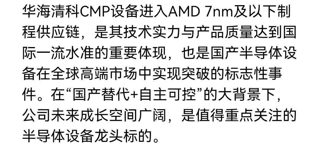 $华海清科(SH688120)$ 华海清科:CMP设备入AMD供应链(7nm及以下制程),国产替代明确。