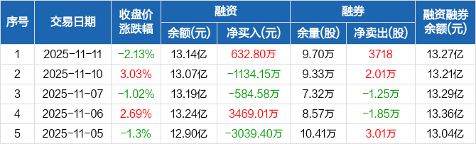华海清科:融资净买入632.8万元,融资余额13.14亿元(11-11)