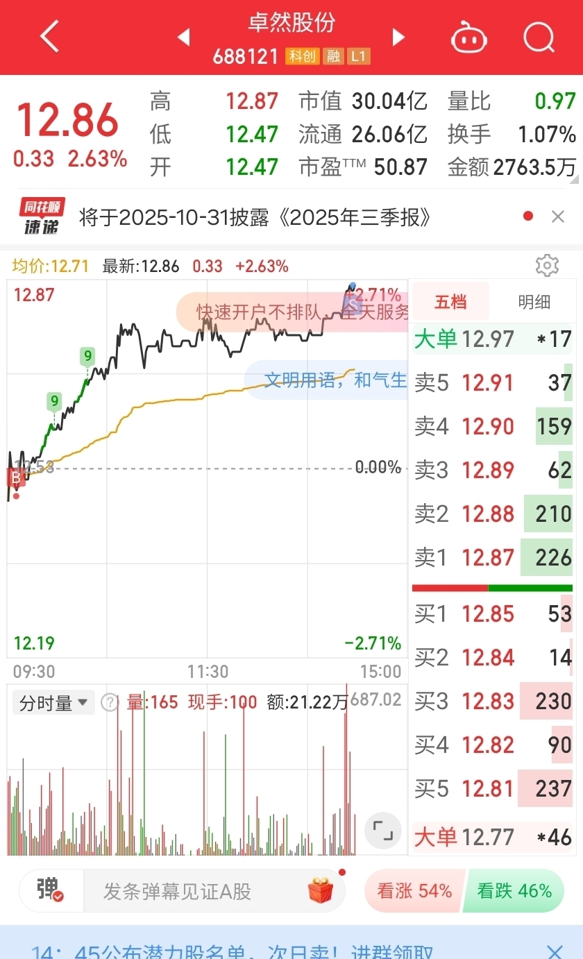 $卓然股份(SH688121)$ 明天接回来