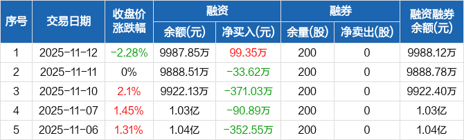 卓然股份:融资净买入99.35万元,融资余额9987.85万元(11-12)