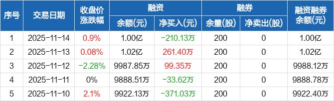 卓然股份:融资净偿还210.13万元,融资余额1亿元(11-14)