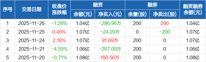 卓然股份:融资净偿还286.96万元,融资余额1.04亿元(11-26)